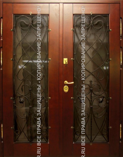 Железная входная тамбурная дверь МДФ с ковкой 503